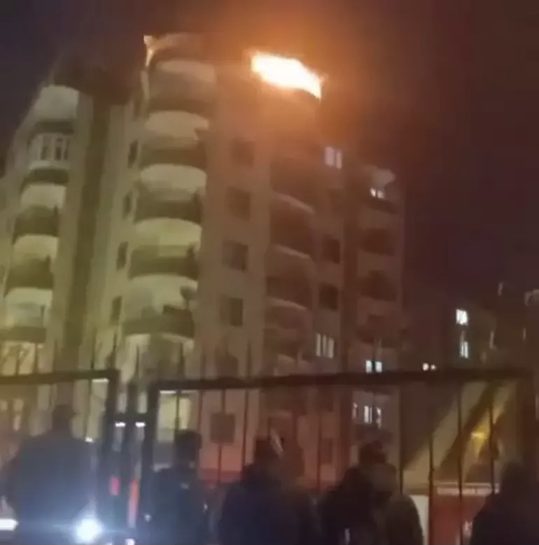 DİYARBAKIR Kayapınar ilçesinde 7 katlı apartmanın terasında yakılan mangaldan sıçrayan kıvılcımlar çatı çıkardı.