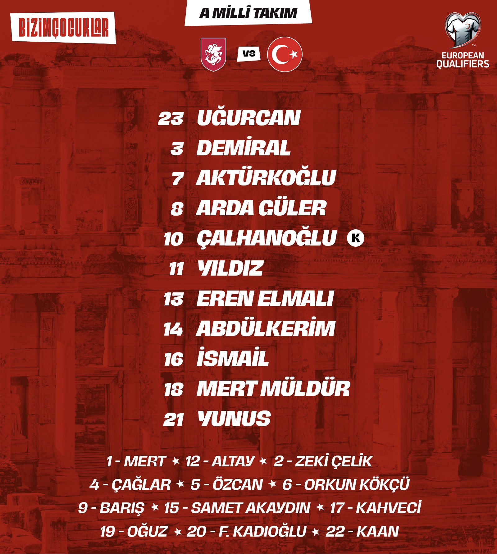 A Milli Futbol Takımı, 2026 FIFA Dünya Kupası Avrupa Elemeleri E Grubu’ndaki ilk maçında Gürcistan ile deplasmanda karşılaşıyor.
