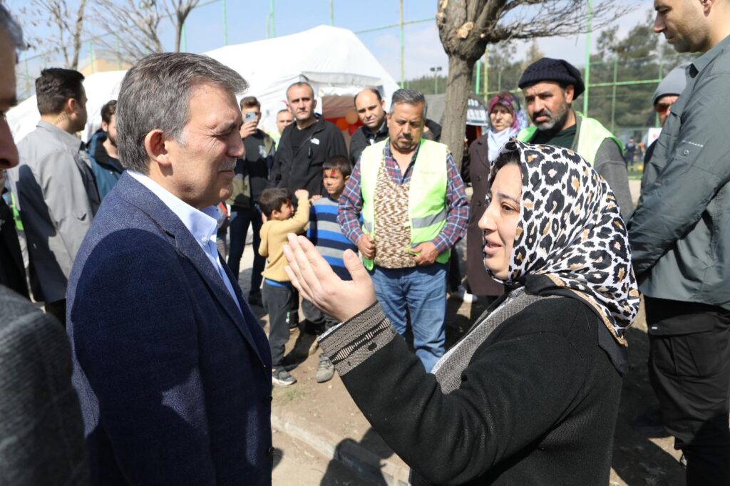 Deprem olduğundan bu yana yaşananları gözyaşı ve üzüntüyle takip ettiğini dile getiren 11. Cumhurbaşkanı Abdullah Gül, arama kurtarma çalışmalarında bir fiil görev alan yerli ve yabancı tüm ekiplere teşekkür etti. Kurtarma çalışmalarına herhangi bir engel teşkil etmemek adına, geçmiş olsun ve taziye dileklerini iletmek üzere bugün Kahramanmaraş’ta olduğunu ifade eden Abdullah Gül sözlerini şöyle sürdürdü: