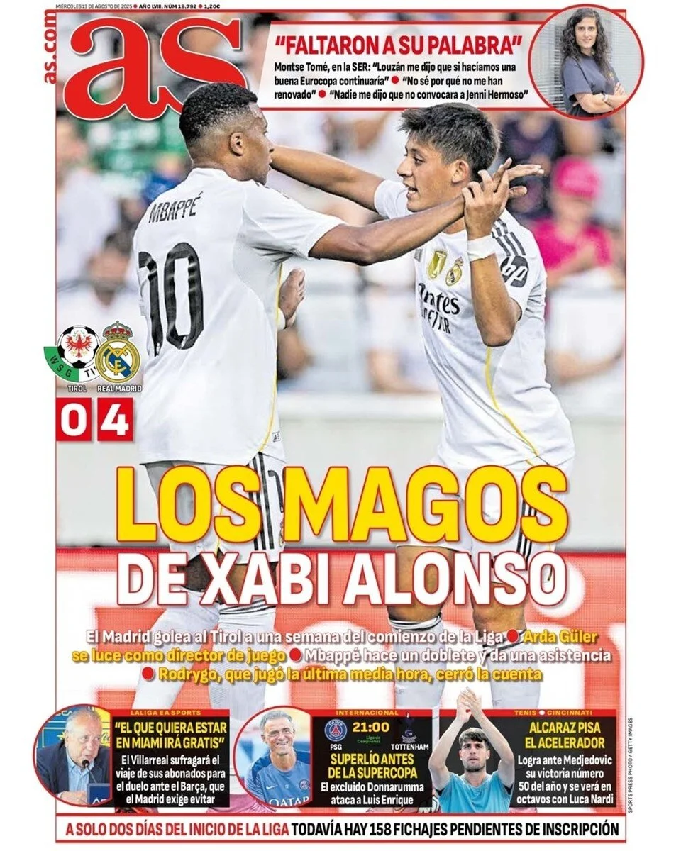 İspanyol gazetesi AS,  Arda ve Mbappe için “Alonso’nun büyücüleri.” başlığını atarak ikiliyi manşetlere taşıdı.