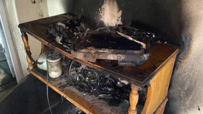 Mustafa Avcılar’ın evinin yatak odasındaki tüplü televizyon, henüz belirlenemeyen nedenle patlayınca yangın çıktı.