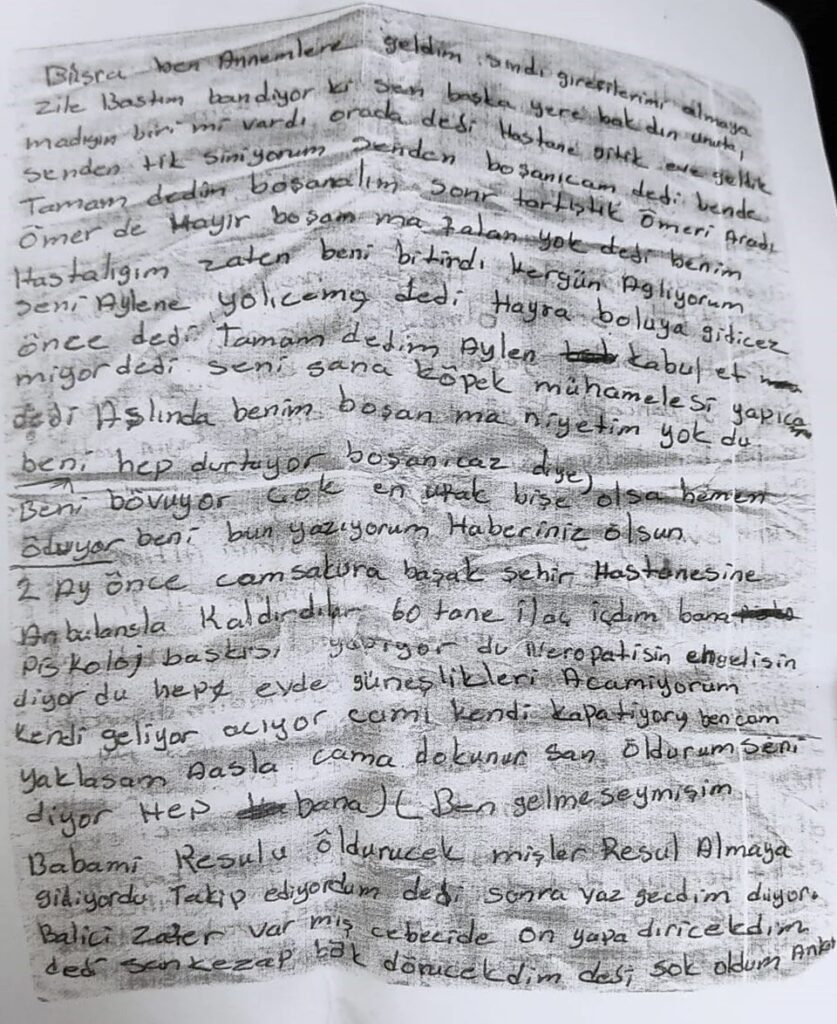 Not kağıdında, “Hastalığım beni zaten bitirdi, her gün ağlıyorum. ‘Sana köpek muamelesi yapacağım’ dedi.
