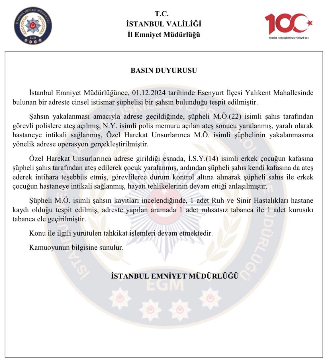 İSTANBUL Esenyurt İlçesi Yenikent Mahallesi 670. Sokak ikamet eden M.Ö., kaçırdığı iki çocuktan birine cinsel istismarda bulundu.