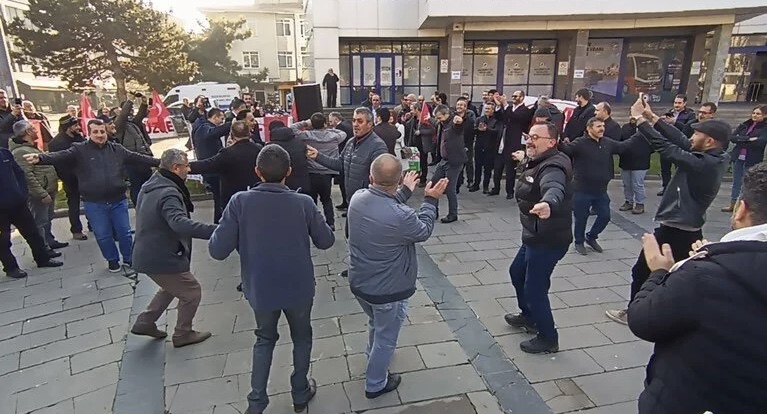 Açıklamayı davul – zurna eşliğinde halay çekerek kutlayan EYT’ liler bugünde tabut parçaladı.