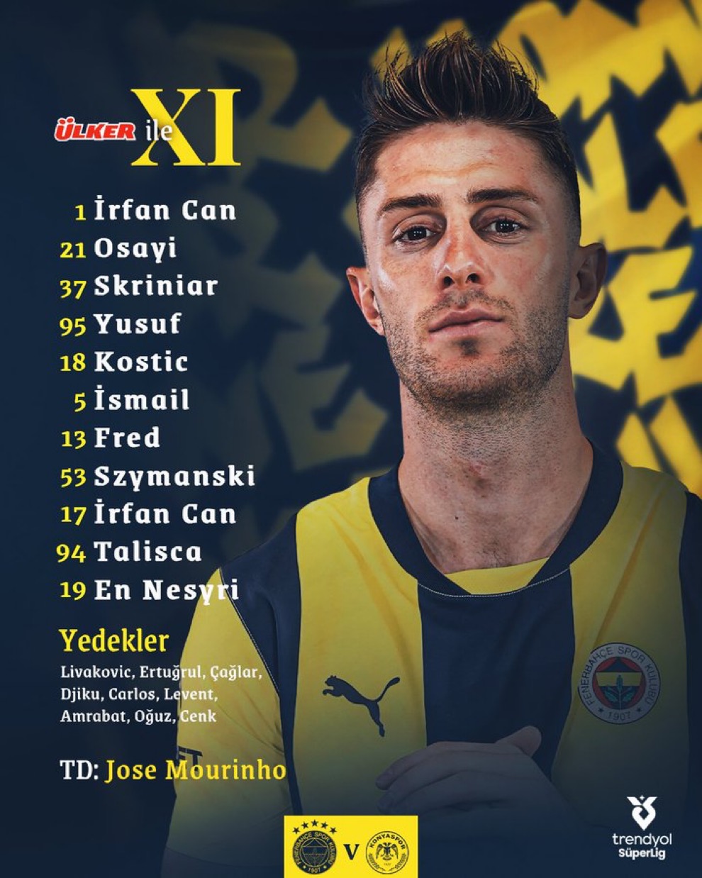 Süper Lig’de sezonun son haftasında ilgi 2. sırada bitirmeyi garantileyen ve Şampiyonlar Ligi ön eleme oynama hakkı elde Fenerbahçe, bugün gündüz maçında Konyaspor’u konuk edecek.
