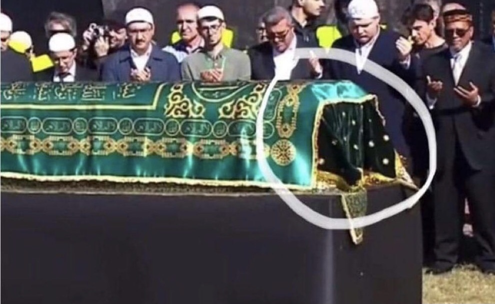 Firari terörist 15 Temmuz hain darbe girişiminin baş aktörü Adil Öksüz’e benzeye bir kişide hemen tabutun arka bölümünde görüntülendi.