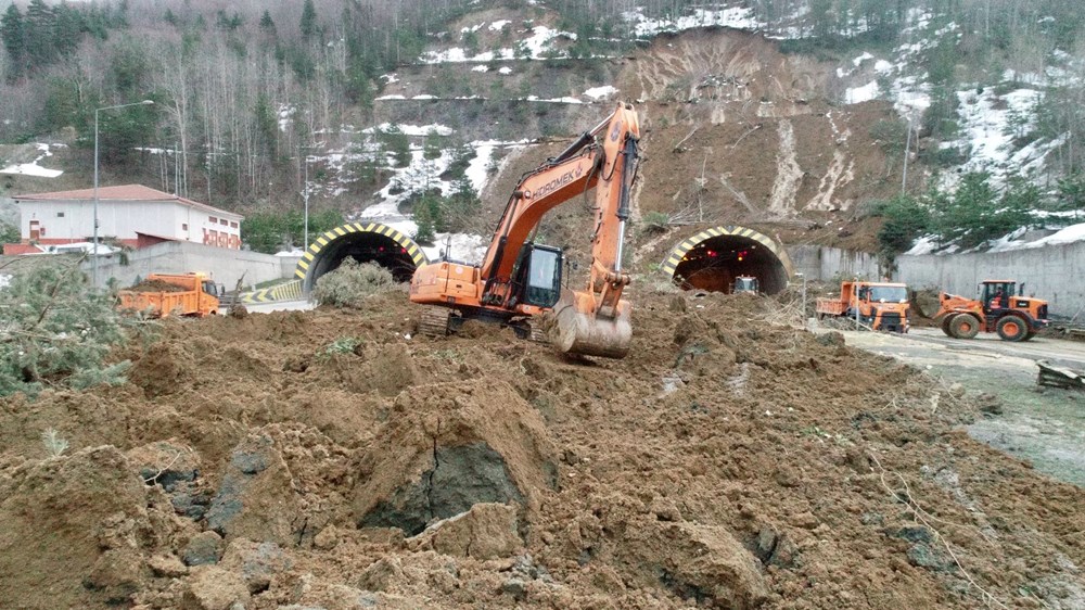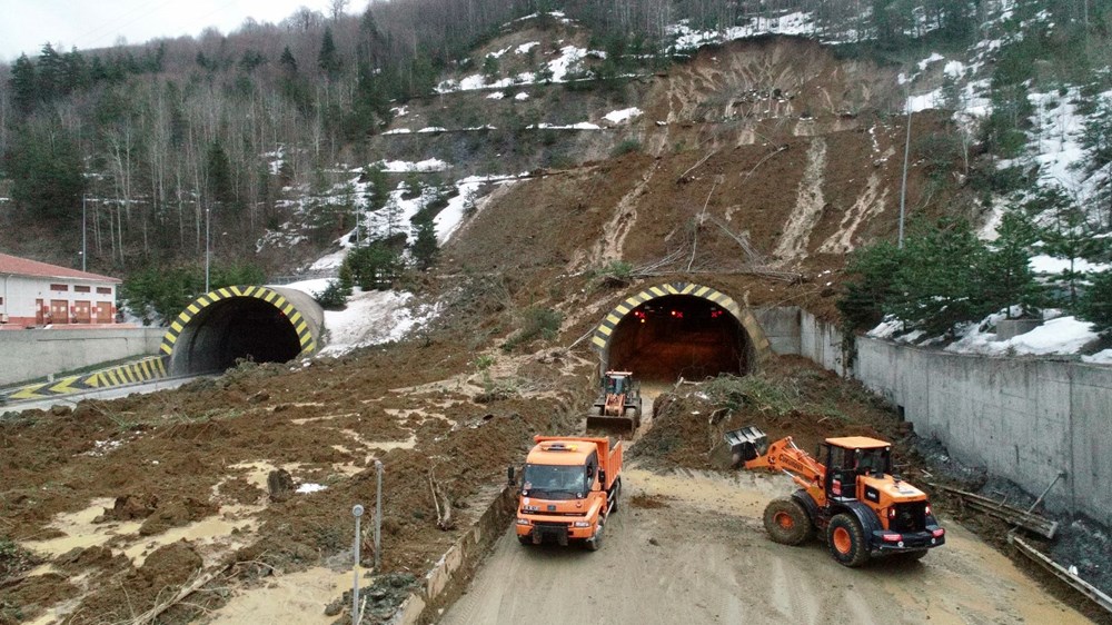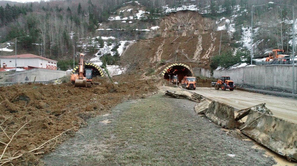 Otoyolun Bolu Dağı Tüneli Düzce girişinde meydana gelen heyelan yüzünden ulaşıma tamamen kapanan yolda, Karayolları ekipleri toprak kaldırma işlemlerini tamamladı.