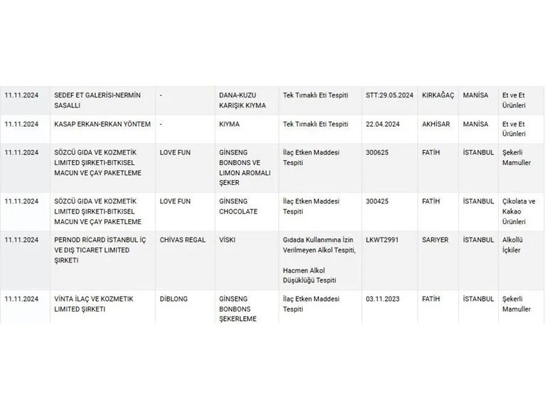 Üründe gıdada kullanımına izin verilmeyen alkol tespit edildiği bildirildi.