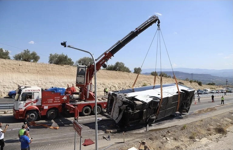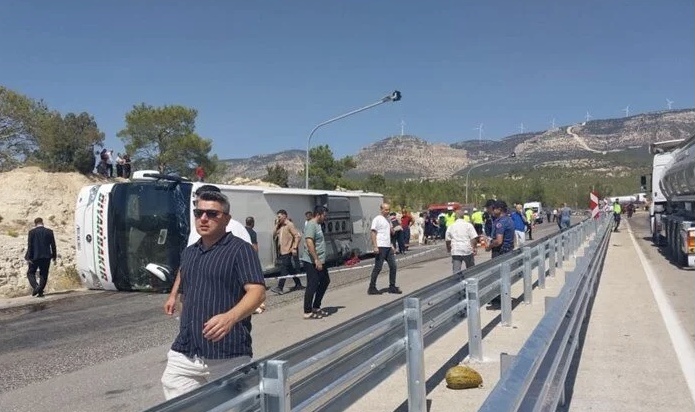 Bu sırada karşı şeritten gelen Şahin K. yönetimindeki 21 KA 021 plakalı yolcu otobüsüne çarpan TIR hurdaya döndü, otobüs ise devrildi.