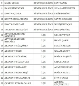 Açıklanan isimlerden 3’ü il, 10’u büyükşehir ilçe, 42’si ilçe belediye başkan adayı.