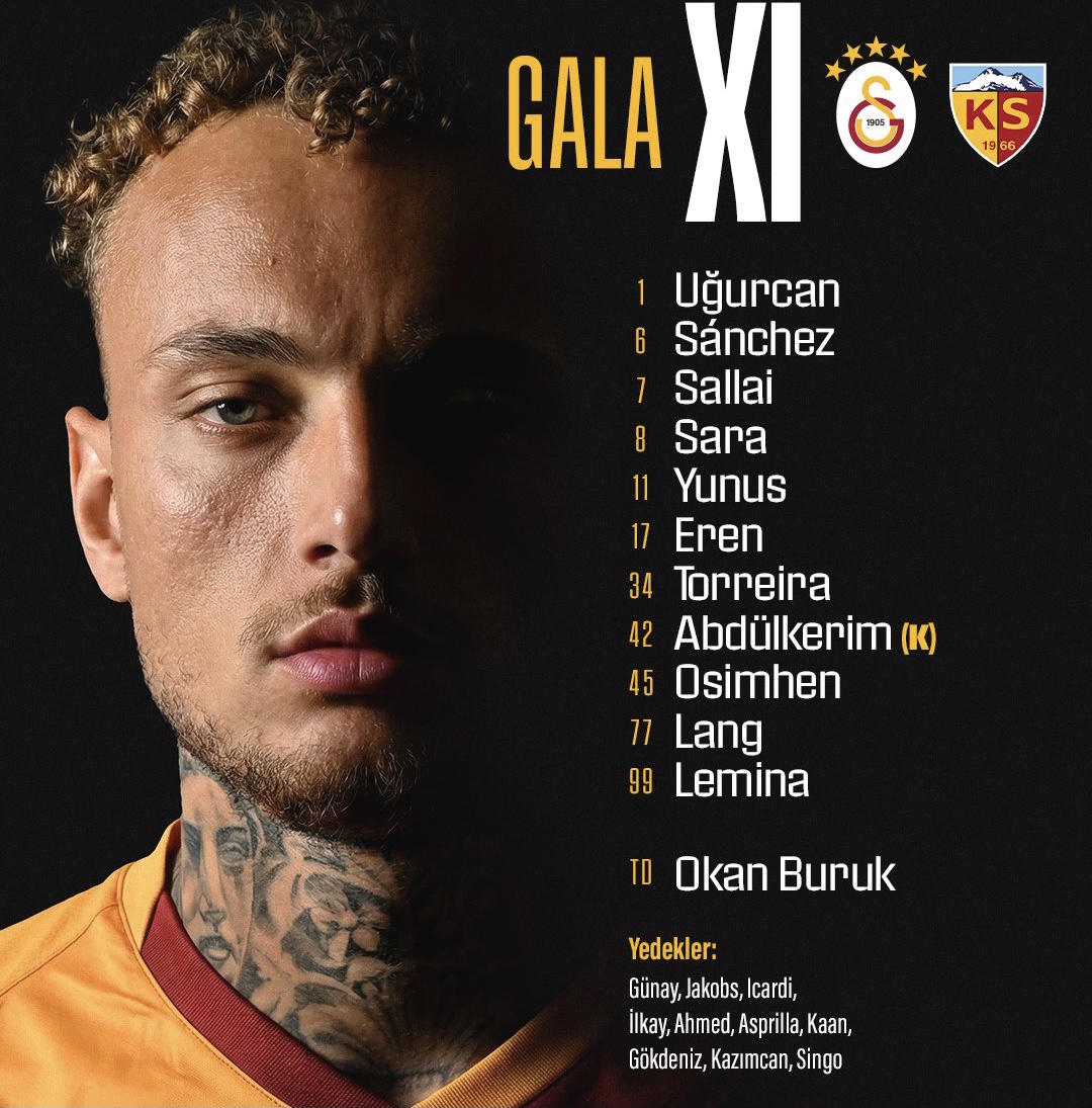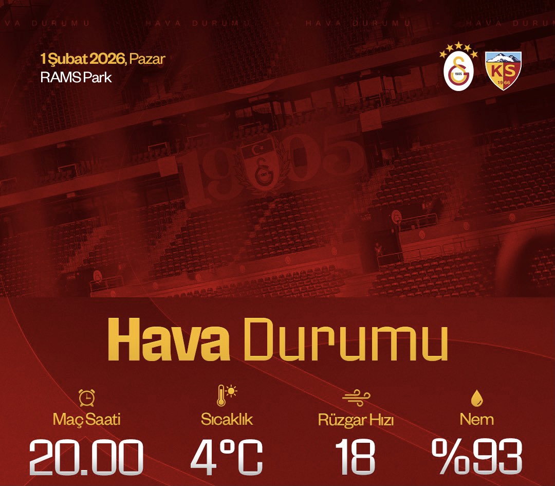 Süper Lig 20. hafta günün kapanış mücadelesinde 46 puanlı lider Galatasaray, küme düşme potasında bulunan 15 puandaki Kayserispor’u konuk ediyor.