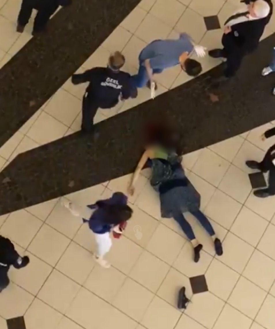 Kadının zemine düştüğünü gören güvenlik görevlileri, durumu polis ve sağlık ekiplerine bildirdi.