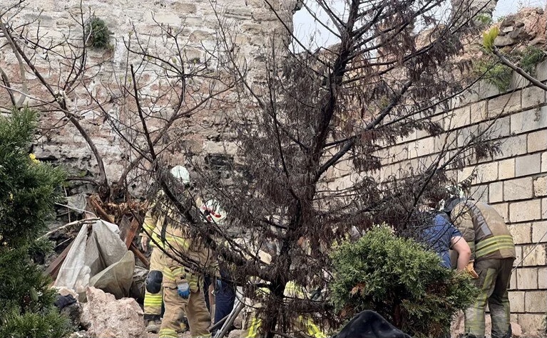 Sağanak yağış nedeniyle Silivrikapı’da bulunan surlarda çökme meydana geldi.