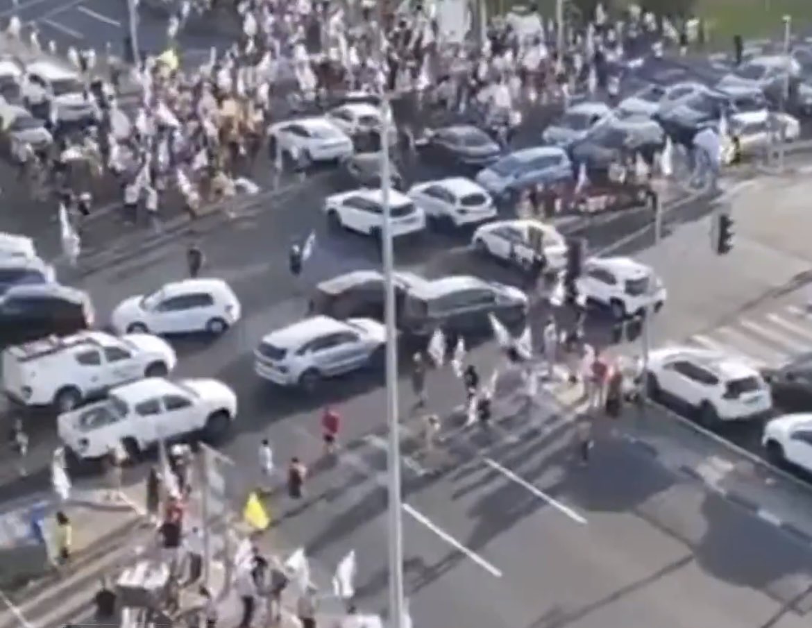 On binlerce kişi, terörist başı Binyamin Netanyahu liderliğindeki hükümetin Filistin Gazze’nin işgal kararını protesto etmek ve derhal ateşkes ve esir takası anlaşması imzalanması talebiyle bugün gerçekleştirilen genel grev kapsamında İsrailliler sokaklara indi.