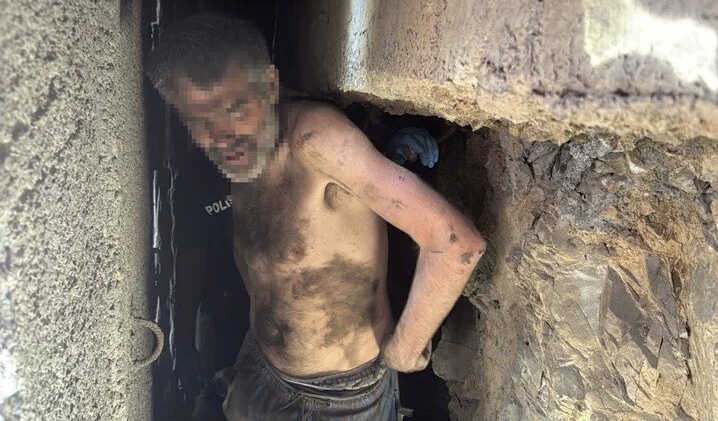 Mahsur kalan kişiye ulaşan polis ekipleri adamın yarı çıplak, bitkin ve vücudunun çeşitli yerlerinde yara izleri olduğunu gördü.