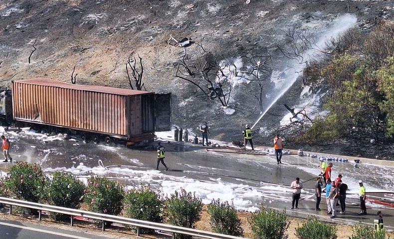 Çarpışmanın ardından yangın çıkan kamyondaki bazı tüpler patladı, alevler önce tıra sonrasında da yol kenarındaki ormanlık alana sıçradı.