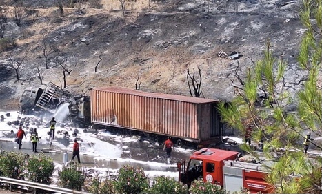 Mersin – Tarsus ilçesinde otoyolda çarpışan tüp yüklü bir kamyon ve TIR ile alevlerin sıçradığı ormanlık alanda meydana gelen yangın söndürüldü.