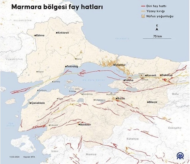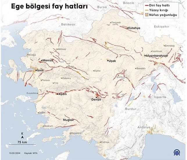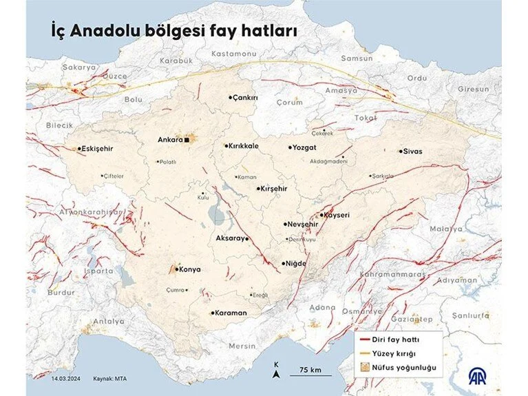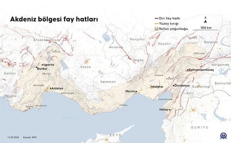 Diri fay üzerinden bulunan iller, Maden Tetkik Arama Genel Müdürlüğü (MTA) üzerinden paylaşılmıştı.