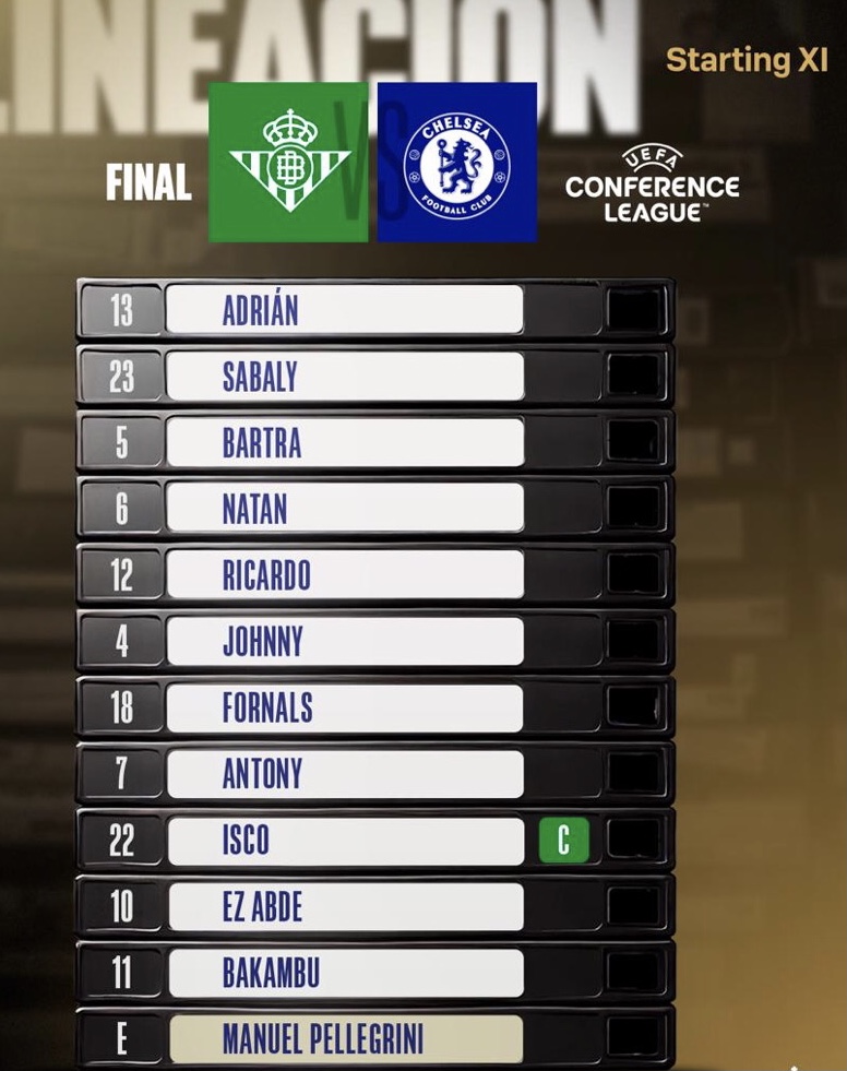 Avrupa Konferans Ligi final maçında İspanyol Real Betis ile İngiliz Chelsea bu gece kupanın sahibi olmak için karşı karşıya geliyor.