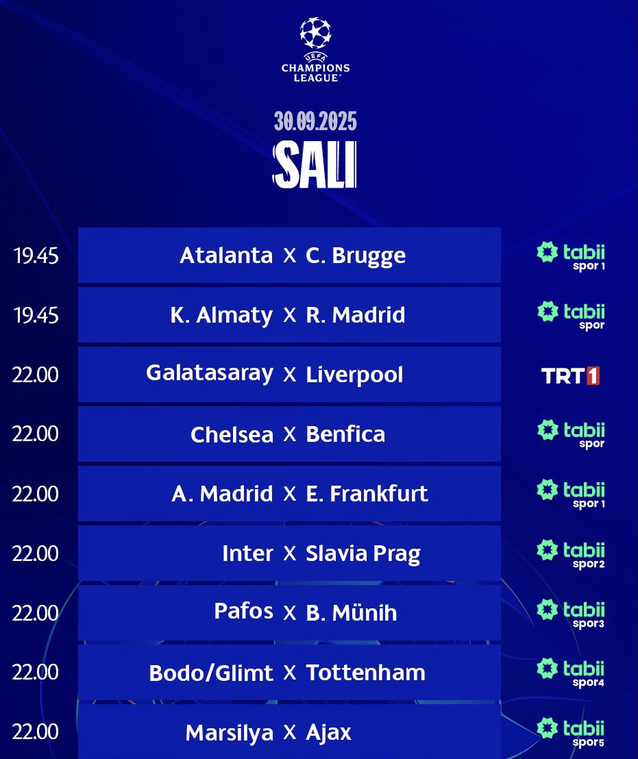 UEFA Şampiyonlar Ligi’nin 2. haftası bugün (30 Eylül Salı) oynanacak 9 karşılaşma ile başlıyor.